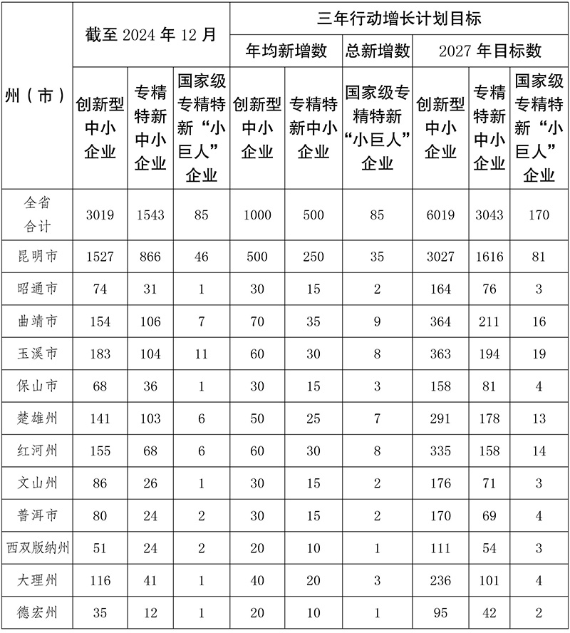云南省专精特新企业倍增三年行动计划